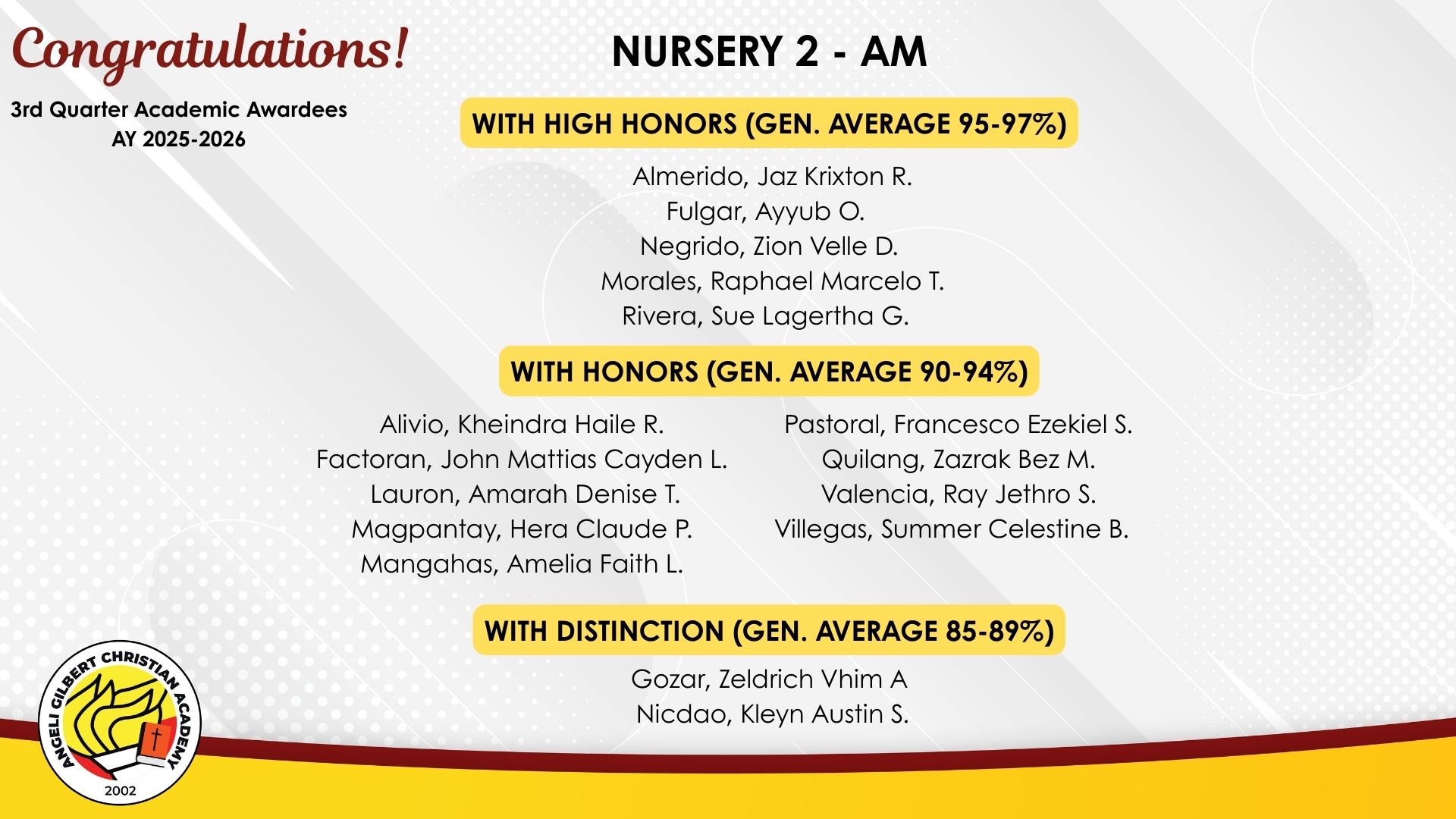Basic Level - AM Class Awardees