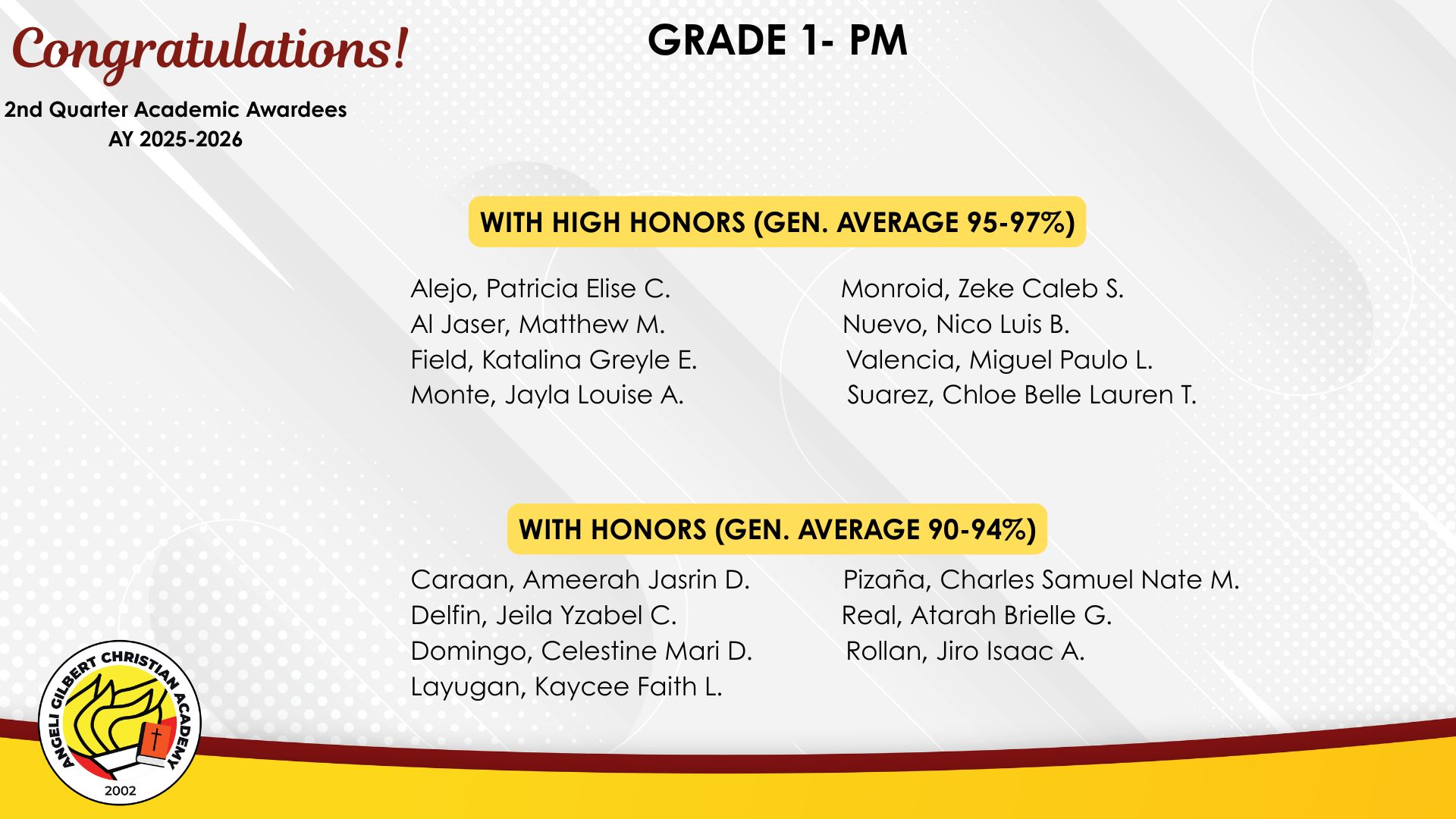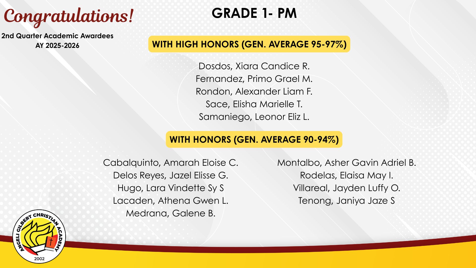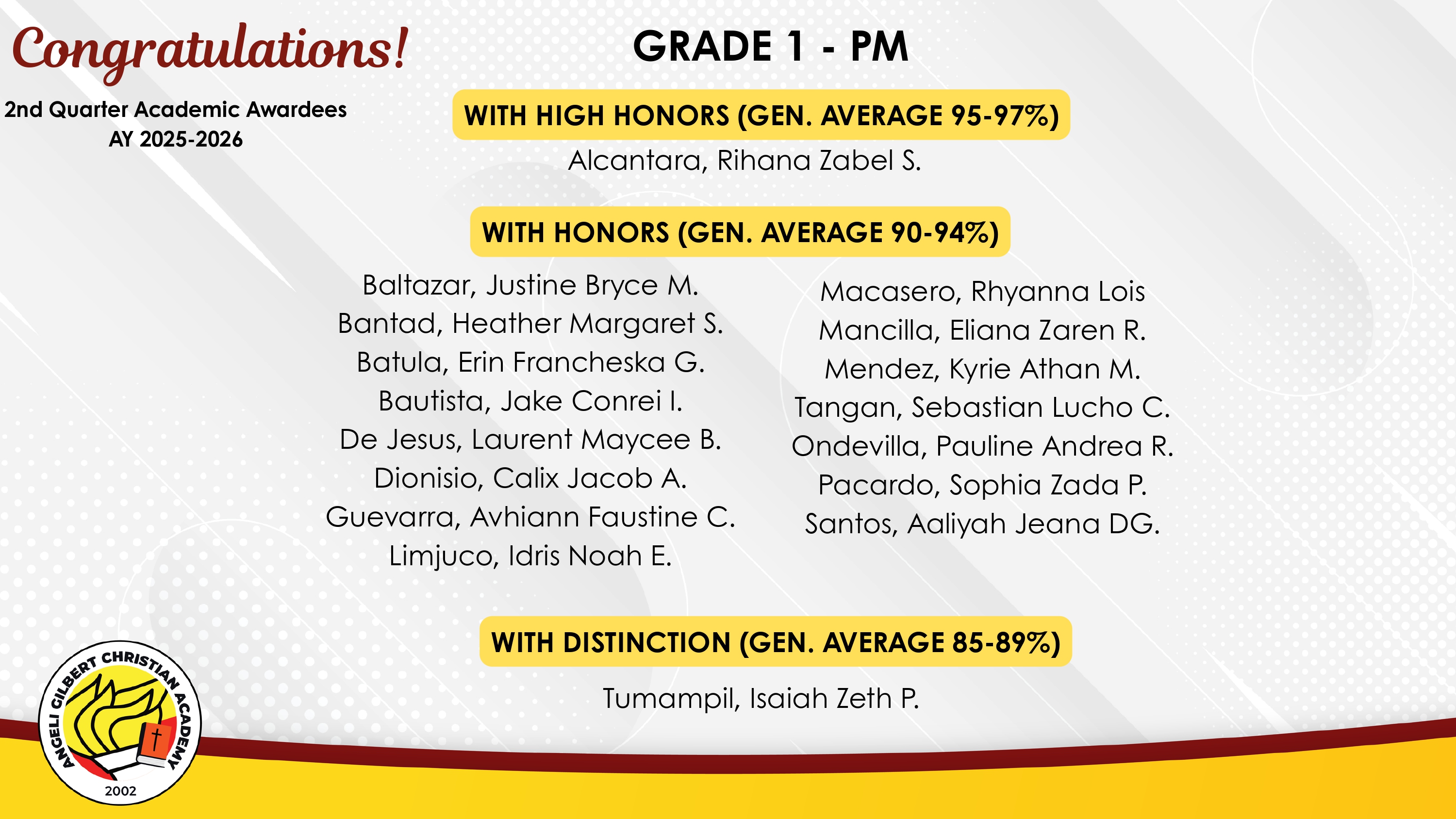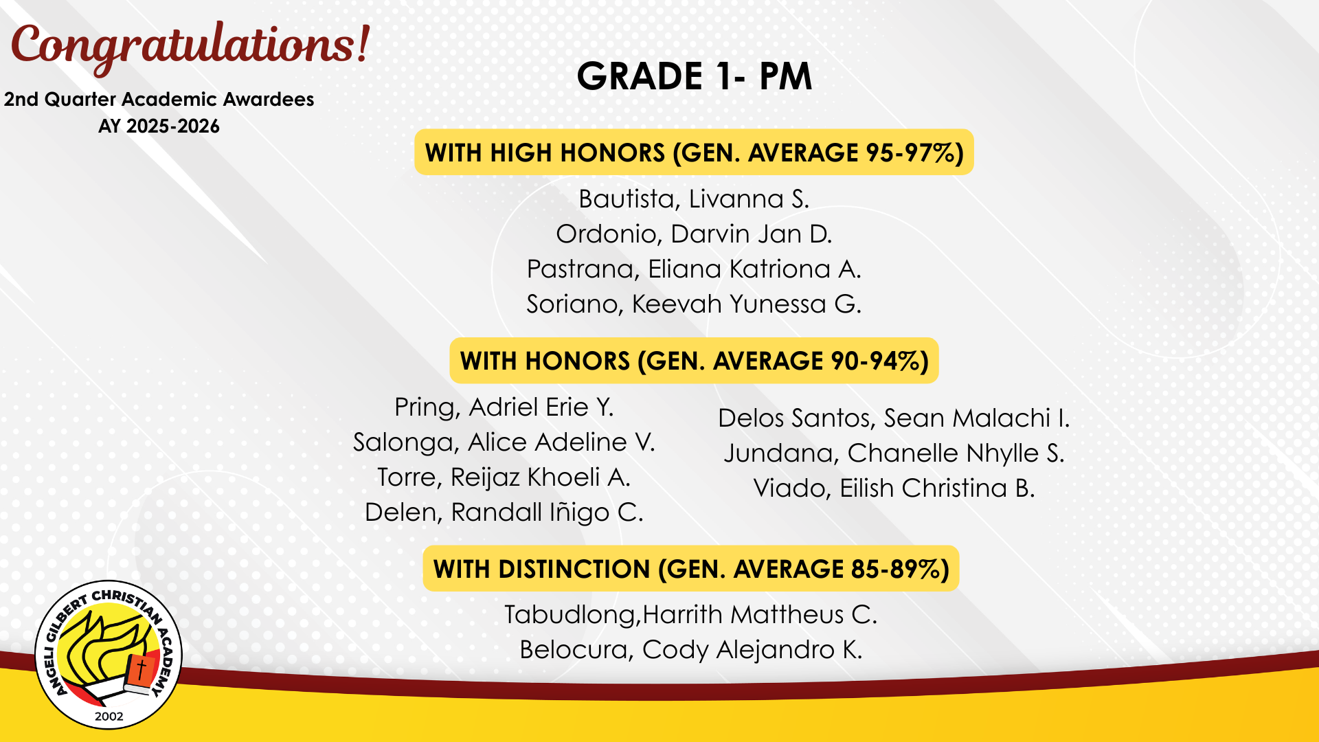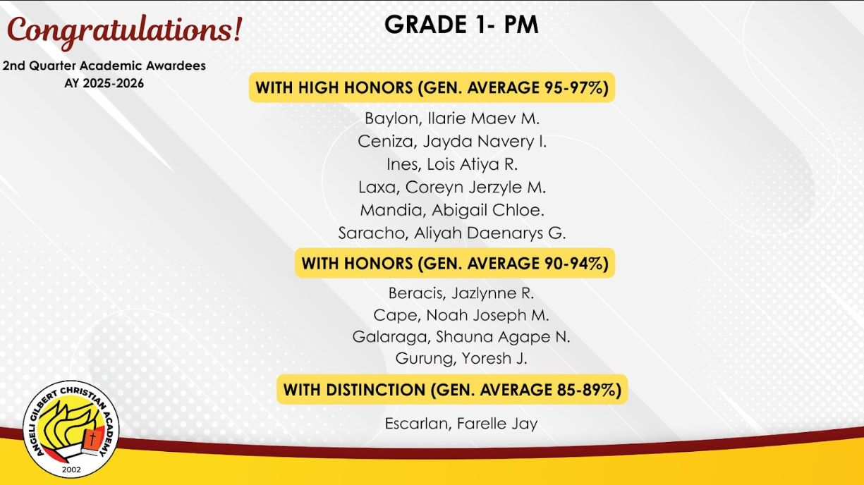 Grade 1 - PM Class Awardees