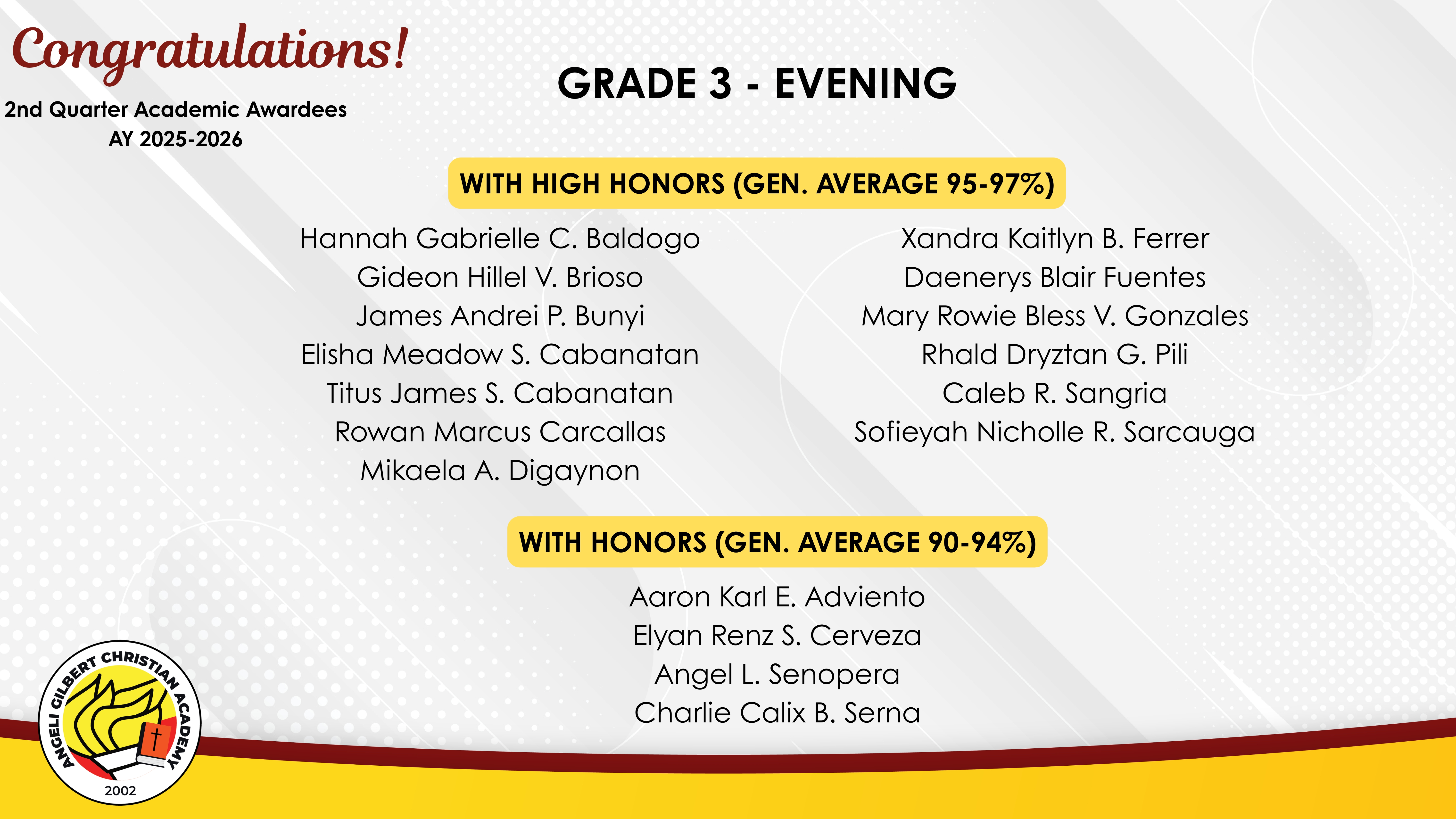 Grade 3 - Evening Class Awardees
