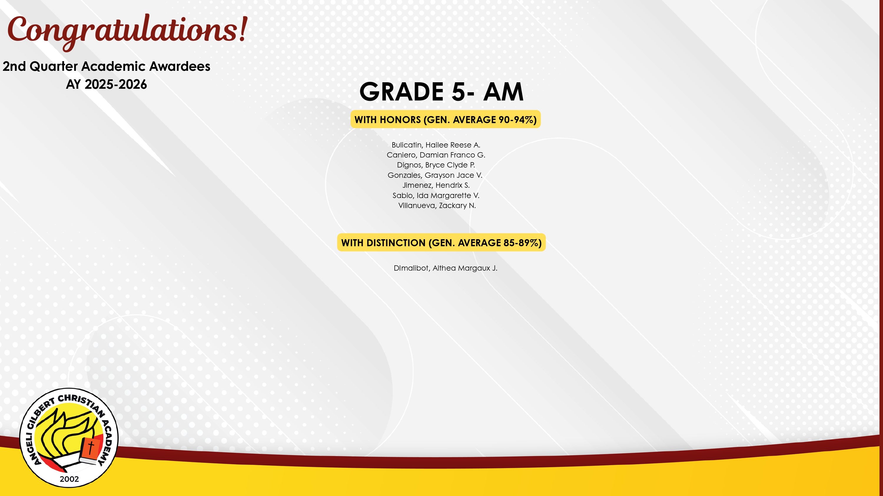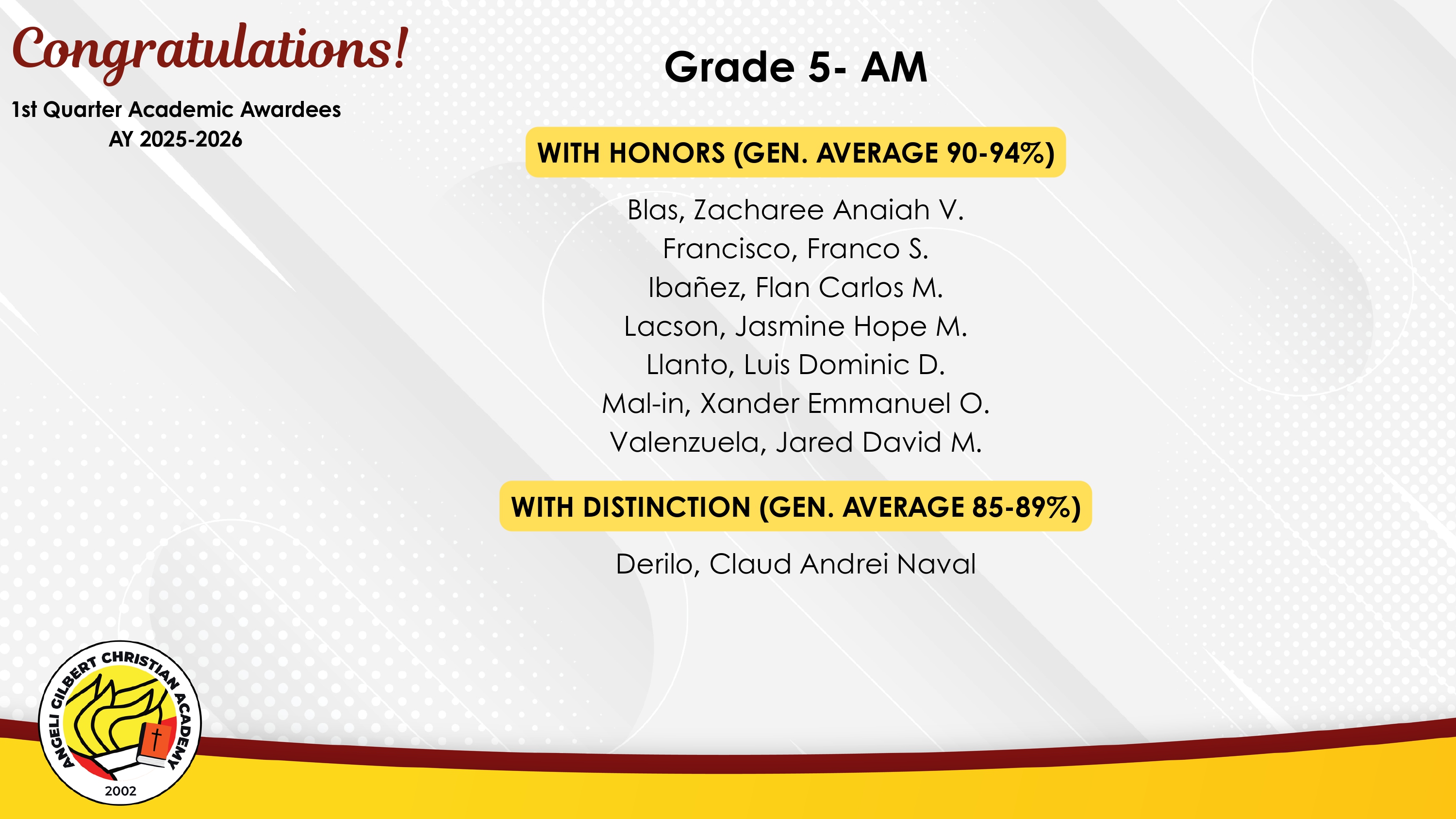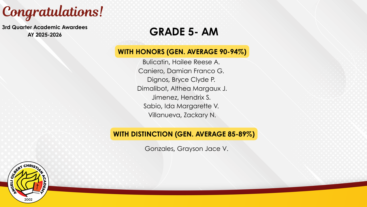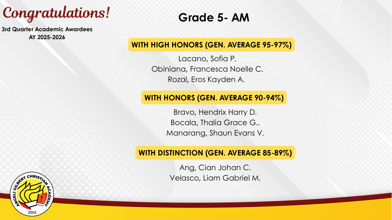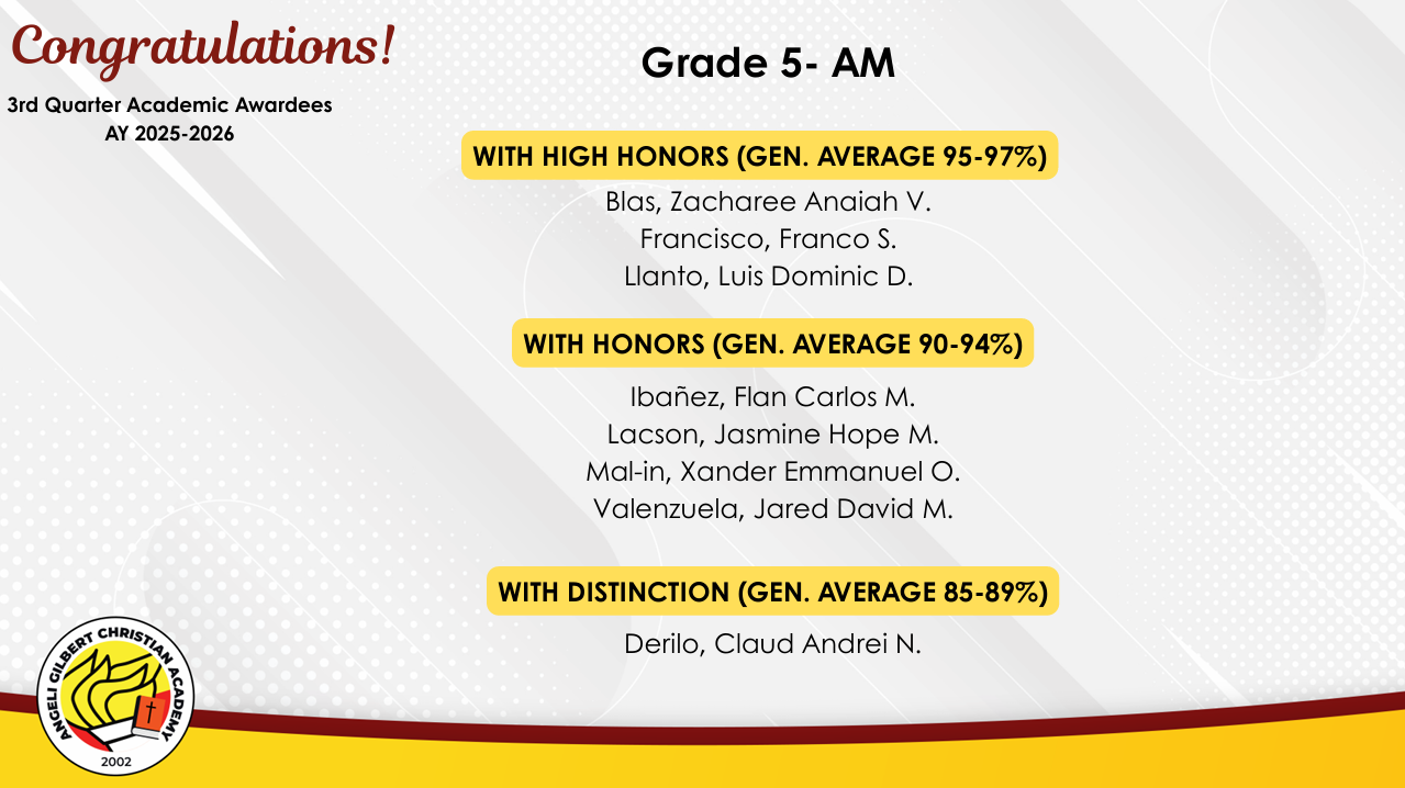 Grade 5 - AM Class Awardees