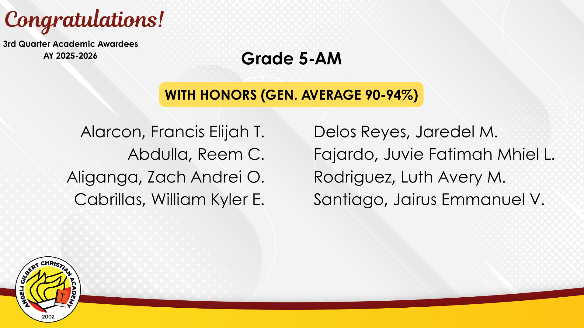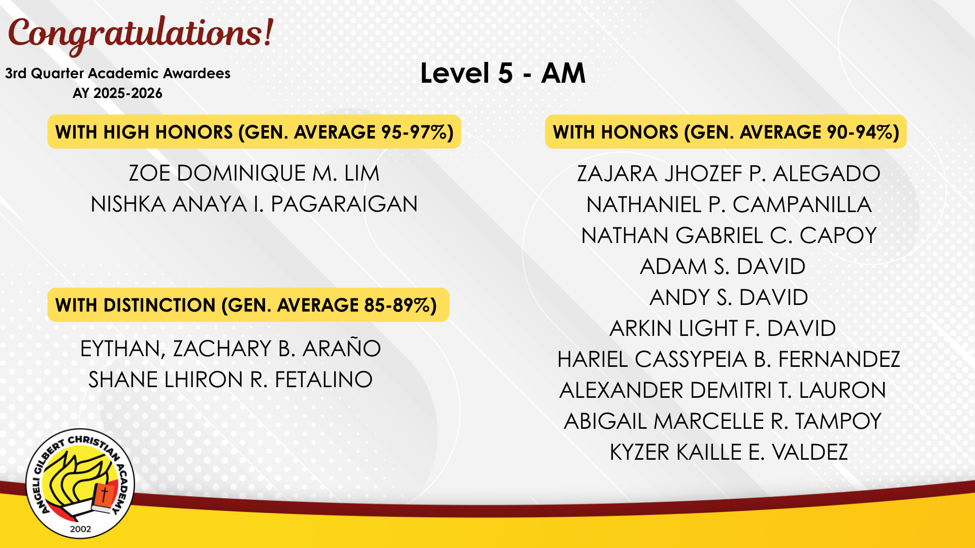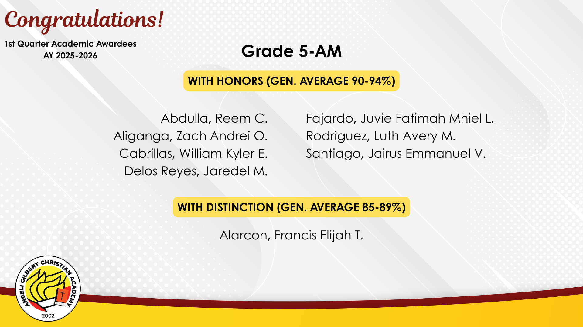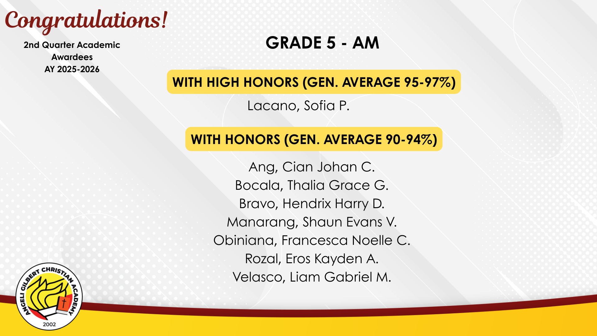 Grade 5 - AM Class Awardees